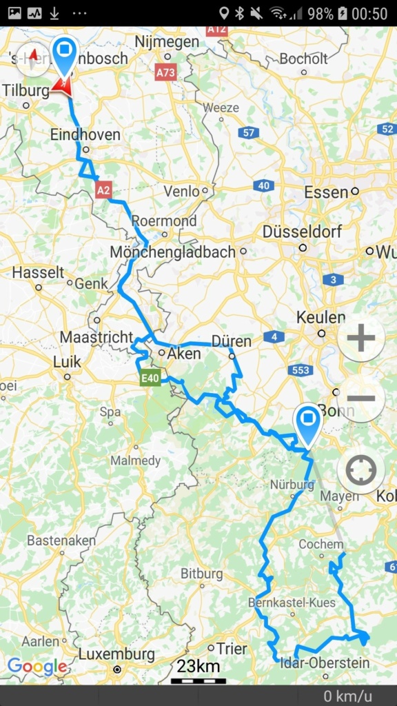 Vanaf vrijdag namiddag 6 juli 2018 (mij moesten eerst voldoende werkuren op de teller zetten…) tot en met zondag 8 juli reden wij rond Altenahr. Twee nachten in het bekende en herkenbare motorhotel Am Tunnel. Oftewel het hotel met de motor op de paal, vlak na (je raadt het al) de tunnel. In 2019 werd dit hotel helaas verkocht. En je ziet wat daar van komt, in juli 2021 werd het bij de overstromingen zwaar beschadigd.